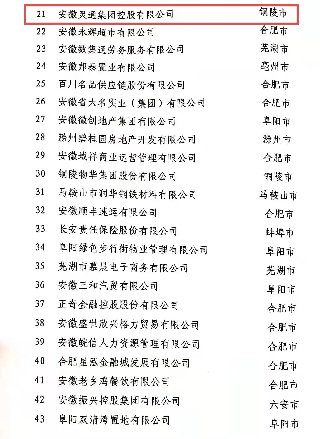 2021年安徽民營企業(yè)百強(qiáng)榜單公布安徽靈通集團(tuán)榮登雙榜單其中營業(yè)收入百強(qiáng)榜